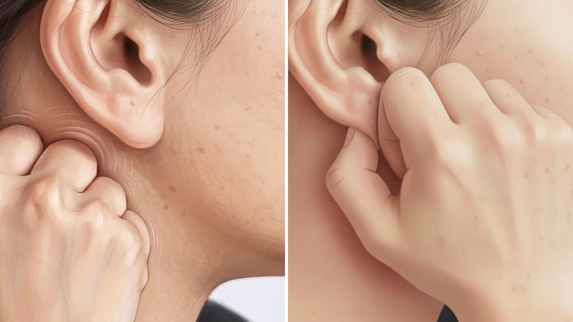 耳の後ろから首すじをやさしくつまんでみてください。つまみやすければOK。つまみにくい、痛い、硬い場合は、首のコリがほうれい線やたるみに影響している可能性があります。