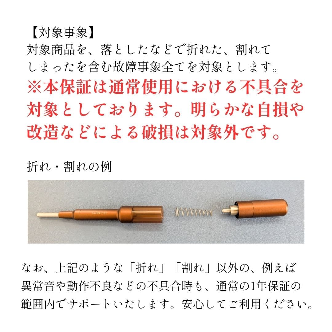 ※本保証は通常使用における不具合を対象としております。明らかな自損や改造などによる破損は対象外です。