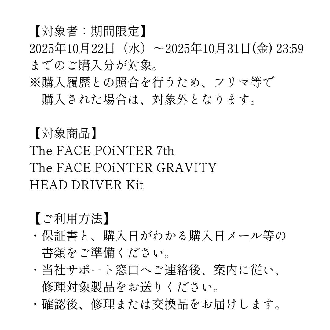 ・対象商品:The FACE POiNTER 7th / The FACE POiNTER GRAVITY / HEAD DRIVER Kit