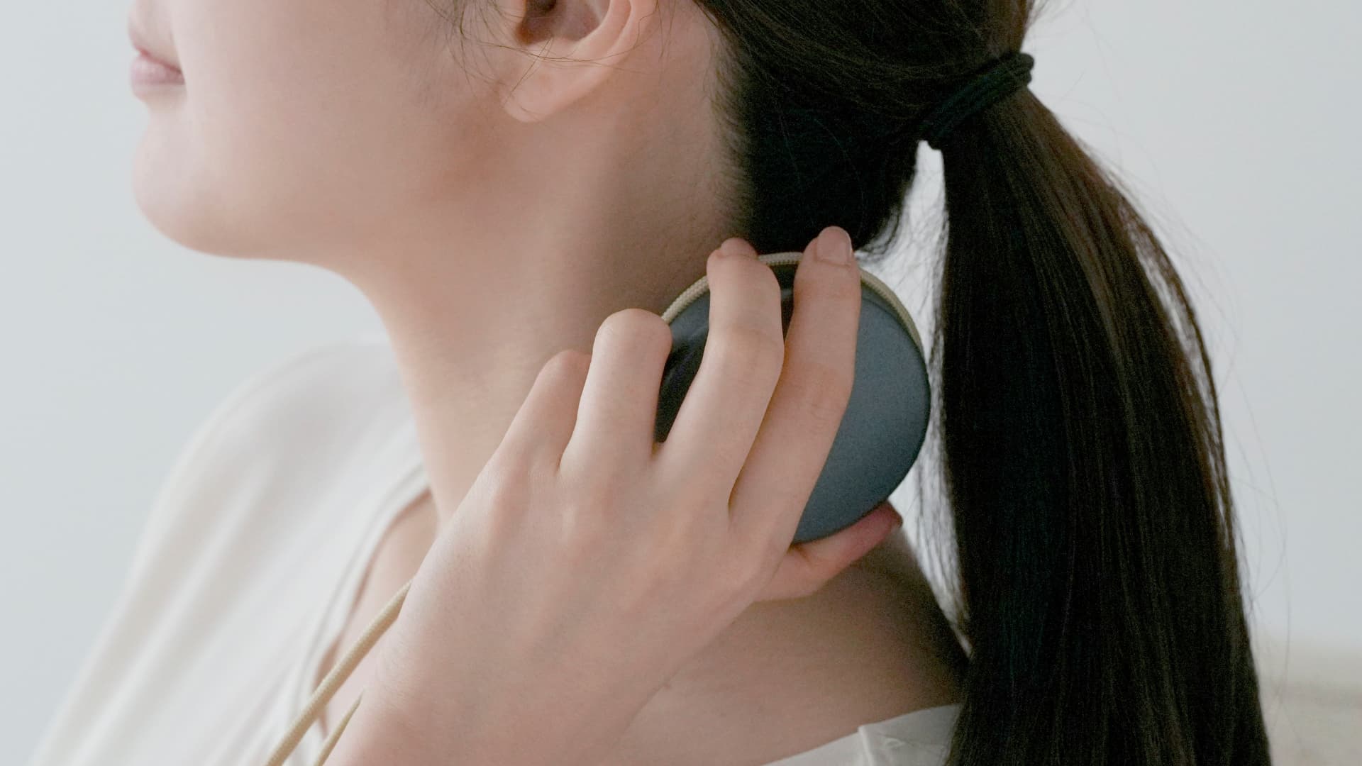 深い部分のコリを、面でやさしくとらえて心地よくほぐすためのケアツールです。頭皮・側頭部・前頭部など、顔につながるエリアをゆっくりゆるめることで、コリやすい頬まわりもすっきりしやすく、表情が動かしやすい状態へと整えます。毎日数分、あてて軽く動かすだけ。プロの手技を参考にした心地よいケアをご自宅で手軽に行えます。